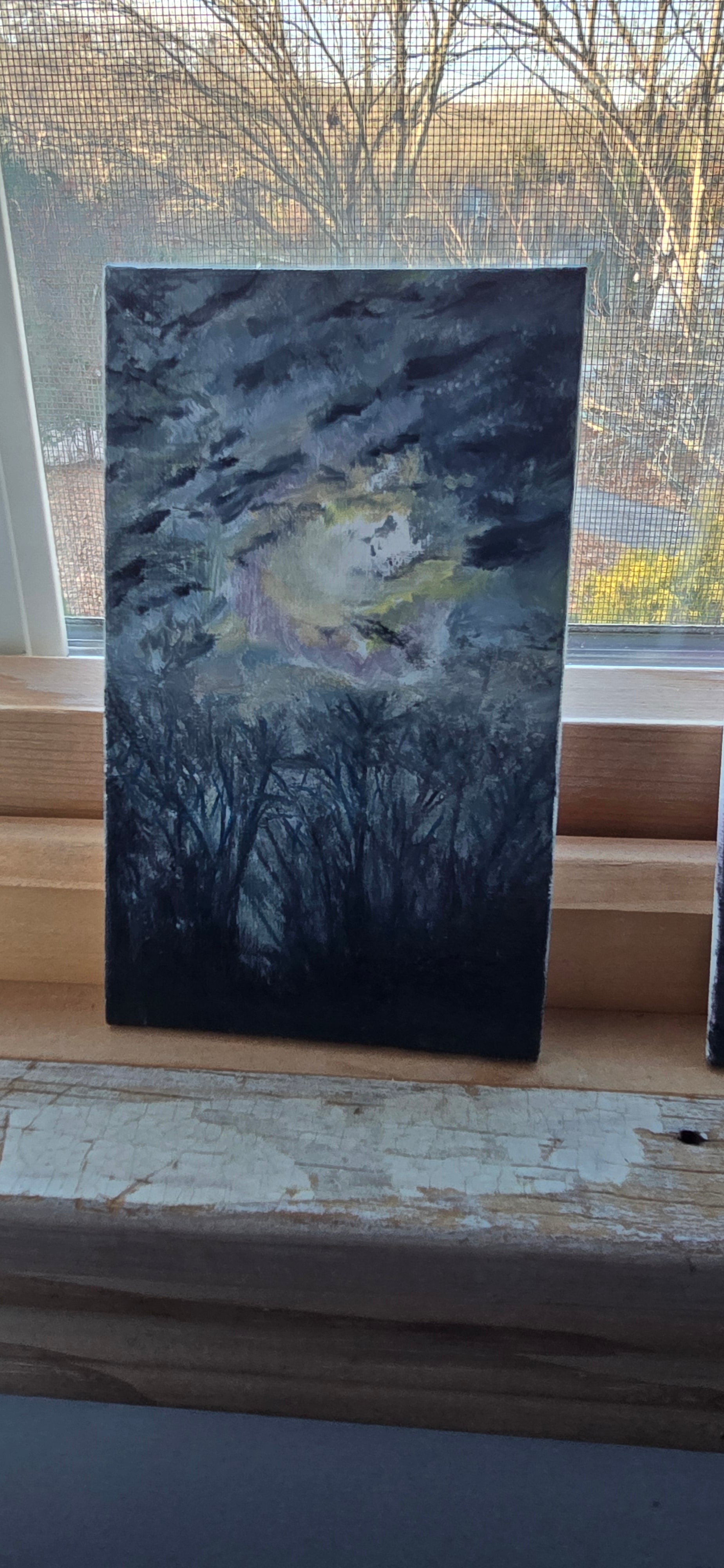 Title: Cold Moon Performance | 3x5" Linen Panel | Oil Painting