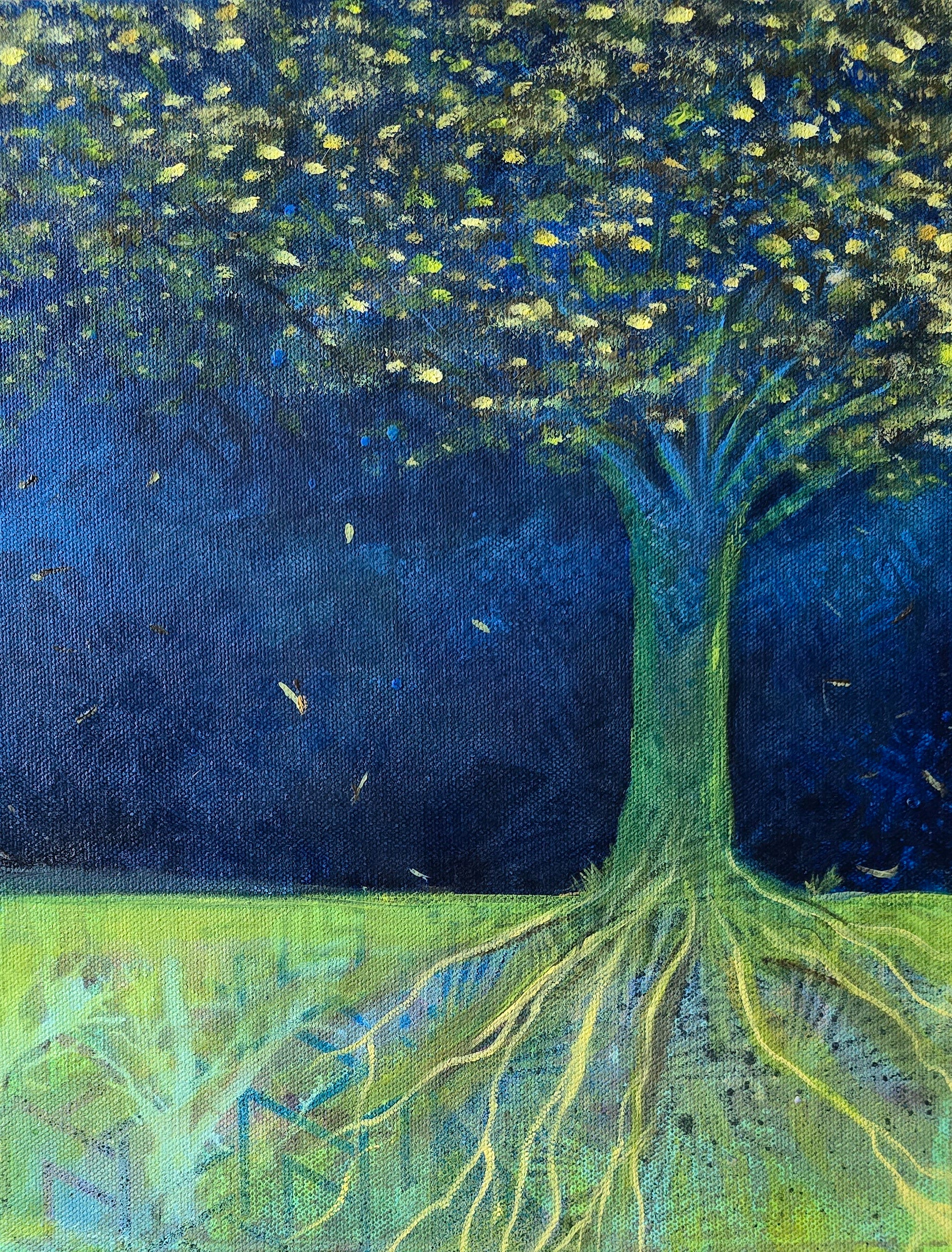 The first piece in my Ukraine-inspired series—a reflection on strength, history, and hope. The tree stands tall, its golden leaves glowing against the night, while its deep roots stretch beneath the earth, unseen but unbreakable. Just like Ukraine, its true power runs deep. 💙💛