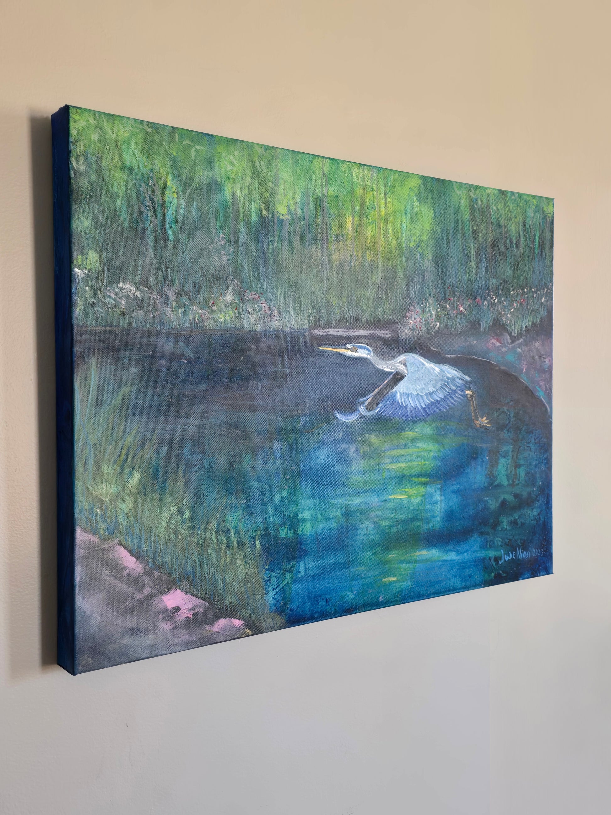 Title: Scoping Heron | 18x24" | Oil on Canvas 1.5" Depth