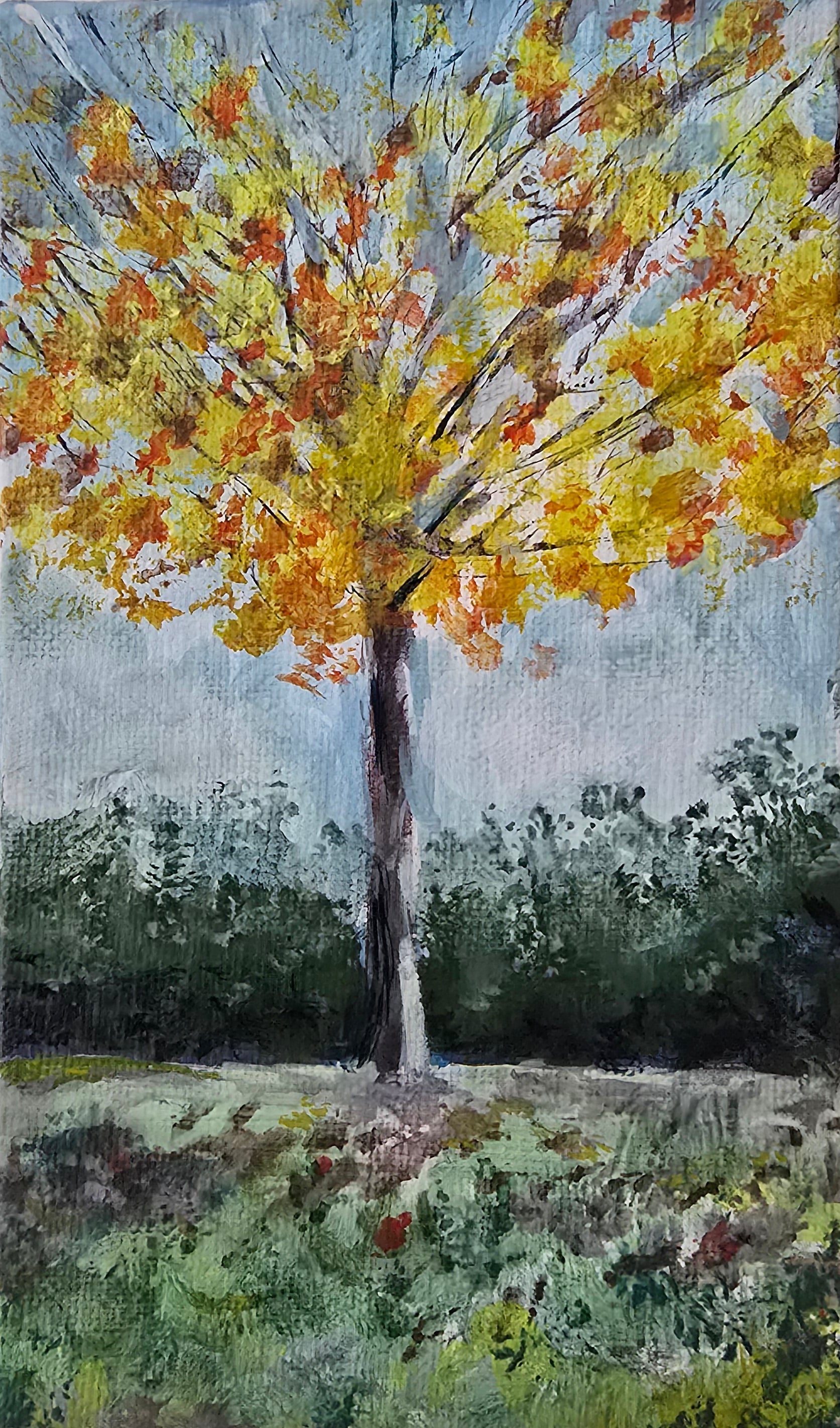 Title: Tree in the Fall | 3x5" Linen Panel | Oil Painting