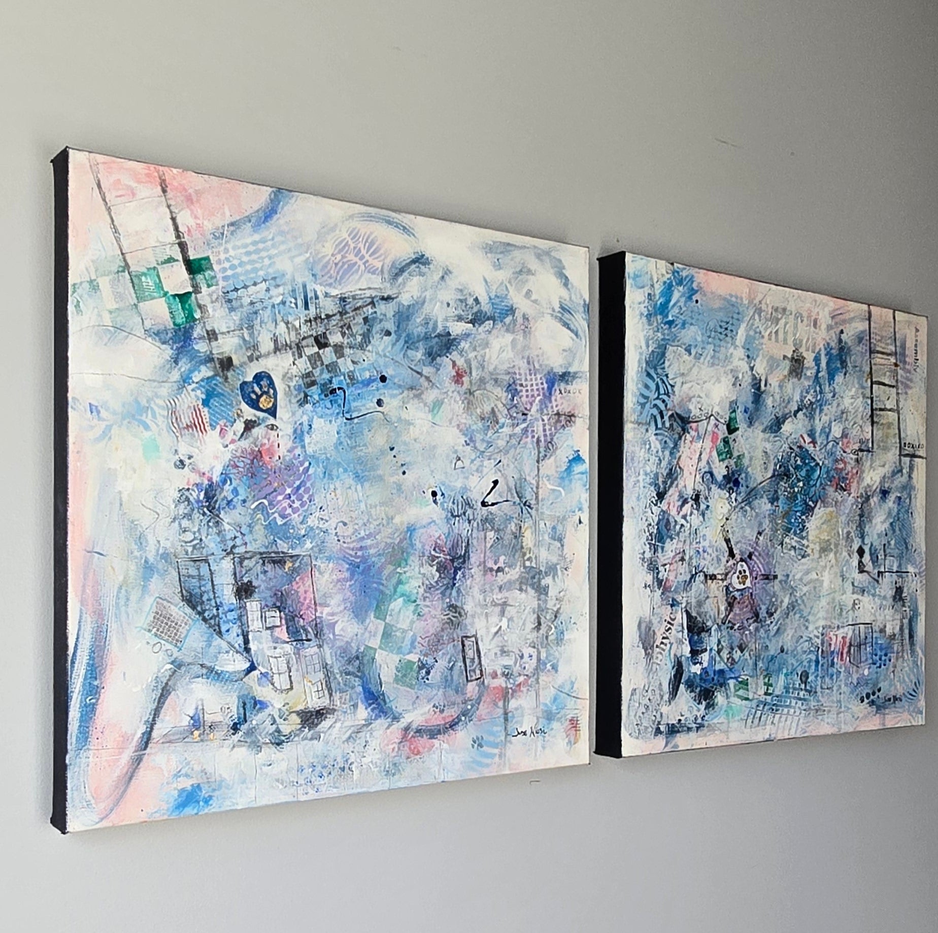 Where You Rest and Threads of Your Light are mixed media pieces that has to do with loss of a beloved fur baby. The paw prints show the mark they leave and their aura that continue to surround us.